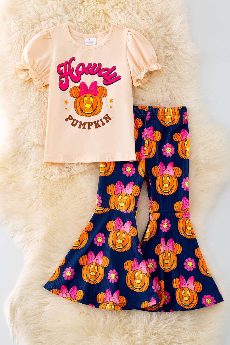 🍁OFG41512 AMY: "Howdy pumpkin" Ivory printed top & bell bottoms.