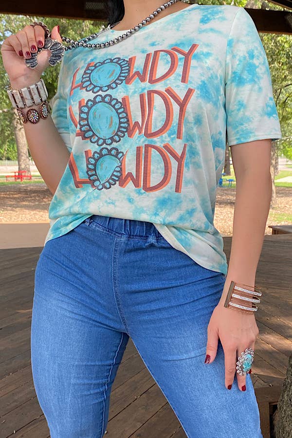 DLH12158 Howdy blue concho printed t-shirt,fashion&comfortable to daily women wear