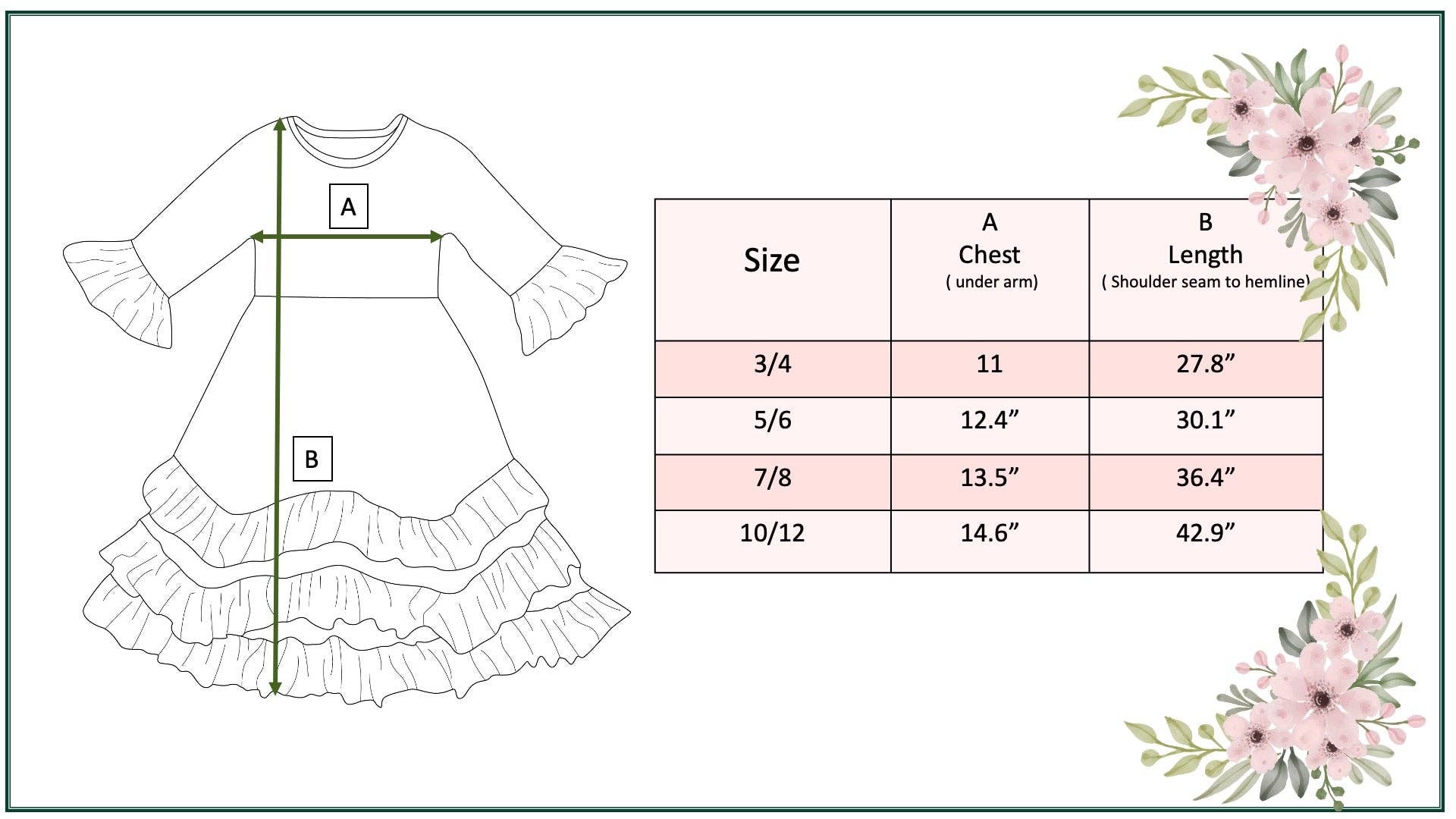 This playful 3 ruffle dress for girls features a charming deep purple polka dot and winter flower print with three delightful ruffles and long sleeves. Perfect for back-to-school days, it’s designed for twirling fun and everyday comfort.