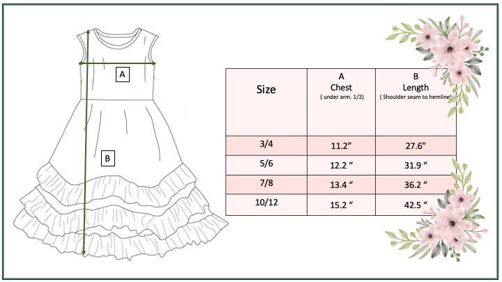 Girls plum & pink floral print sleeveless twirl dress with triple ruffle hem detail. Perfect for Spring & Summer!