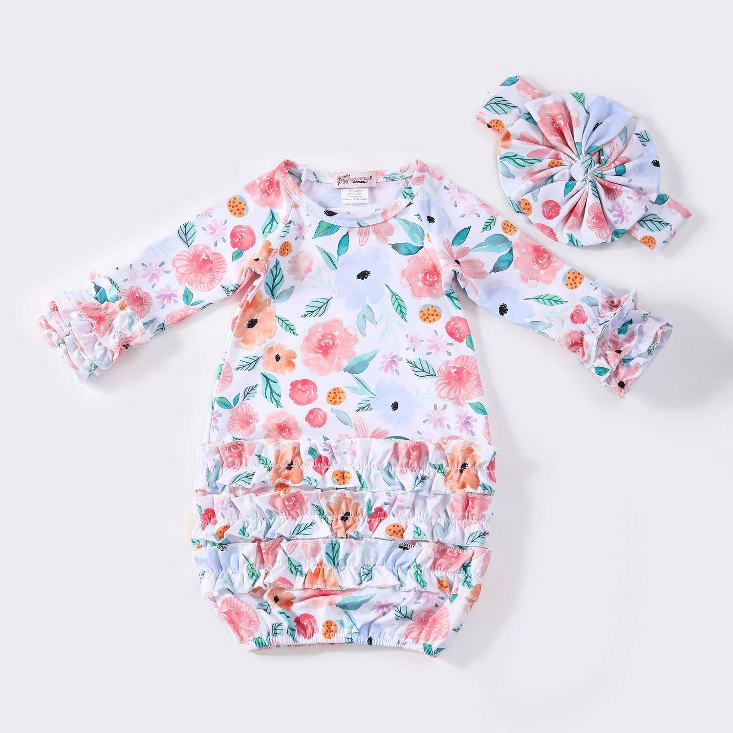 Enjoy sleep or play time when wearing this adorable baby gown and matching headband. Fits Newborn to 3 months!