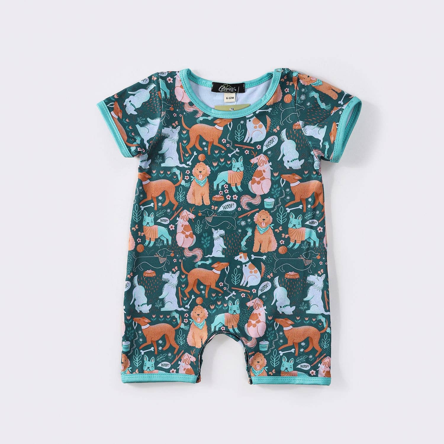 These adorable summer short sleeve rompers are a perfect boutique style and they have easy access with a snap bottom!